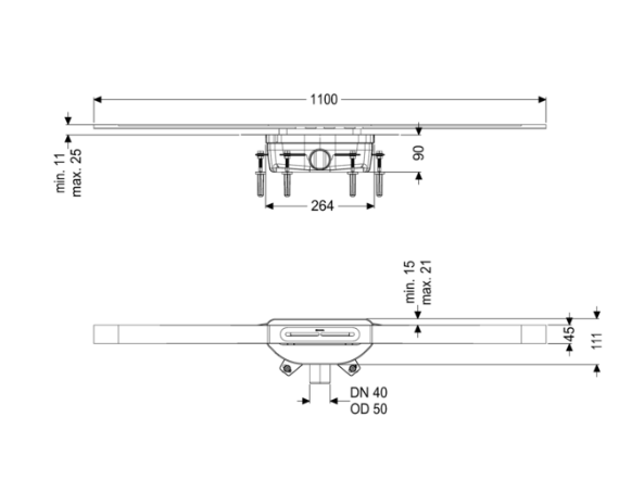 Dane techniczne: - długość odpływu: 1100 mm
