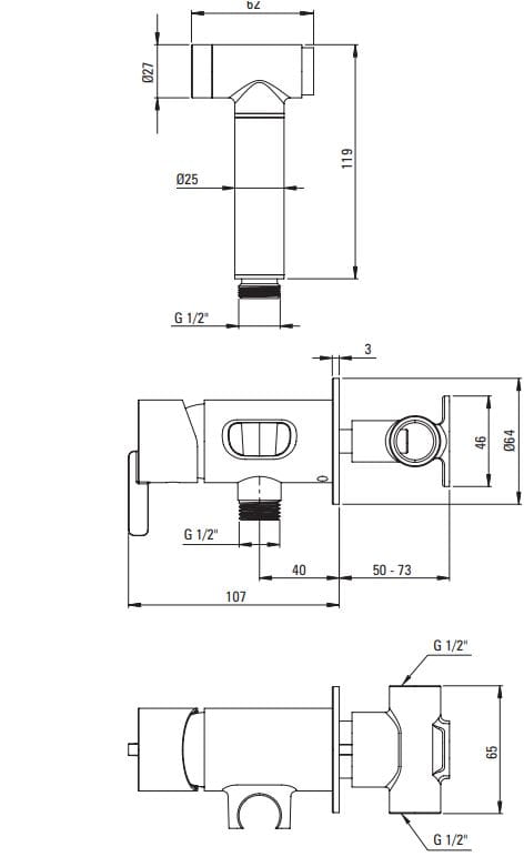 Bateria bidetowa podtynkowa ze słuchawką typu bidetta