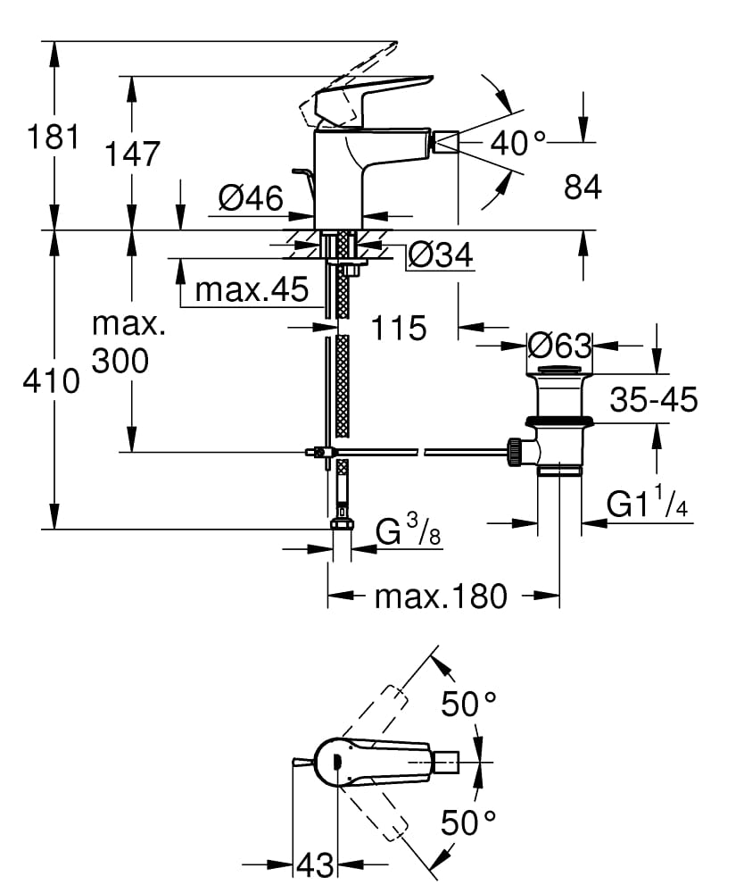 START JEDNOUCHWYTOWA BATERIA BIDETOWA, DN 15 ROZMIAR S