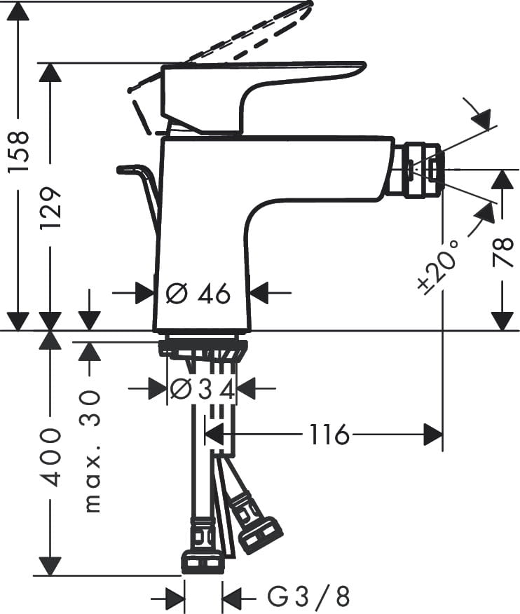 Talis E Jednouchwytowa bateria bidetowa z cięgłem