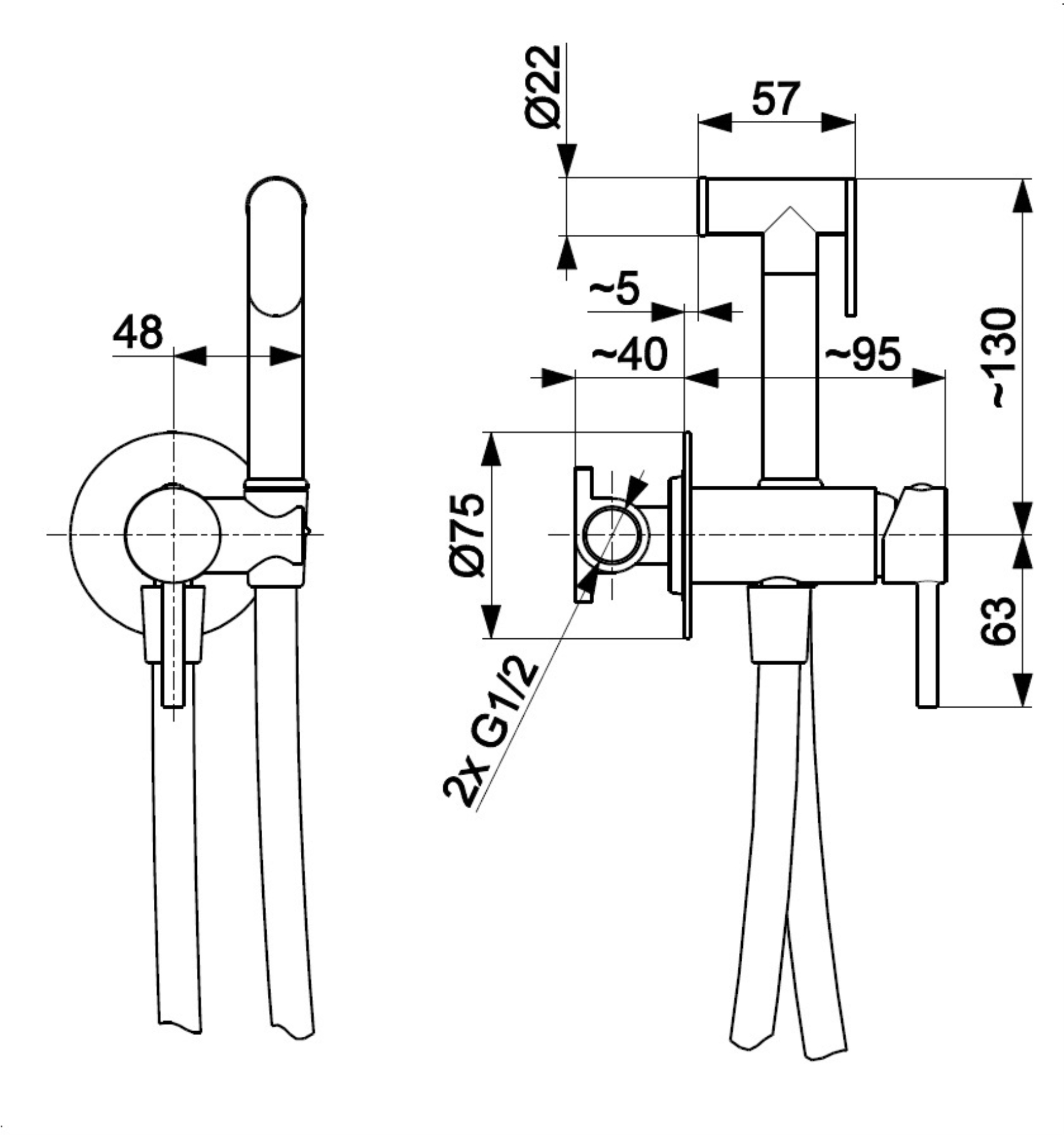 Opakowanie zawiera: bateria bidetowa podtynkowa, wąż, rączka jednofunkcyjna.
