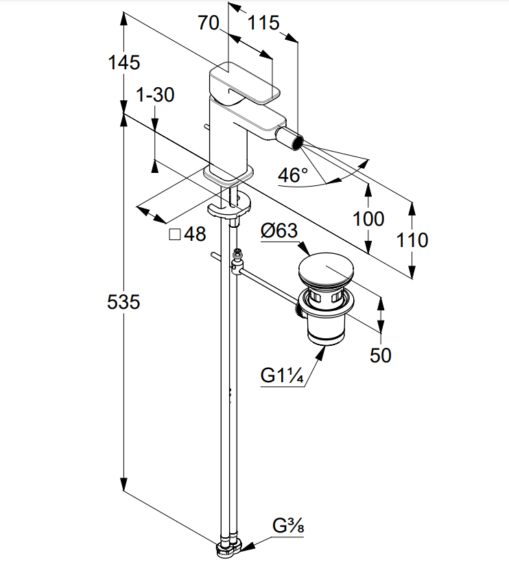 Bateria bidetowa KLUDI RENON czarny mat 422163975