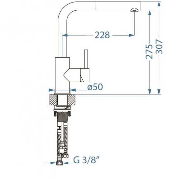 - Wyposażenie w komplecie: perlator, wężyki przyłączeniowe G3/8'', mocowanie
