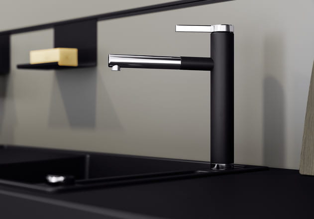 Bateria kuchenna BLANCO LINEE-S z wyciąganą wylewką, czarny/chrom 526171