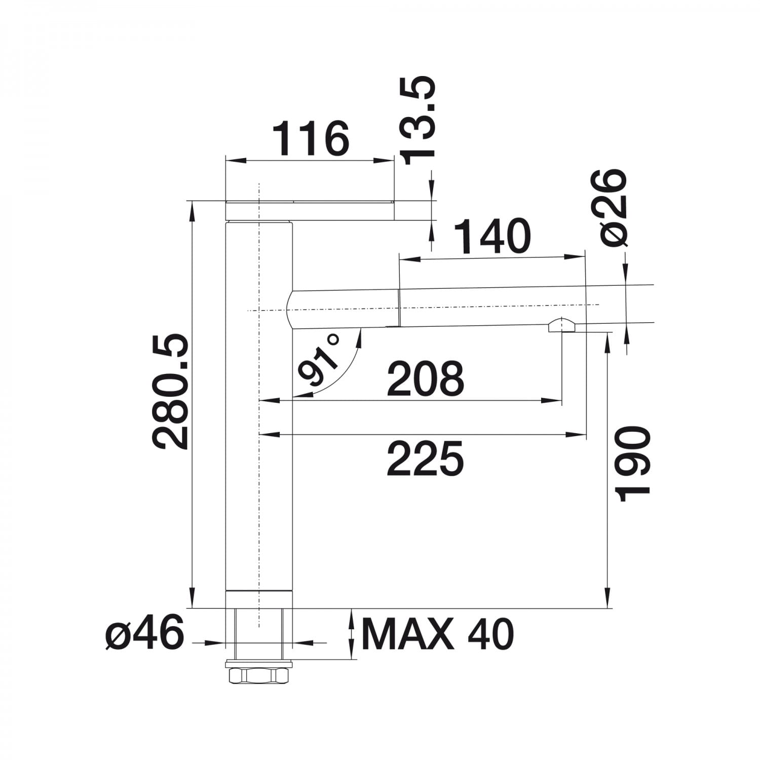 - Ruchoma wylewka kąt obrotu: 130°