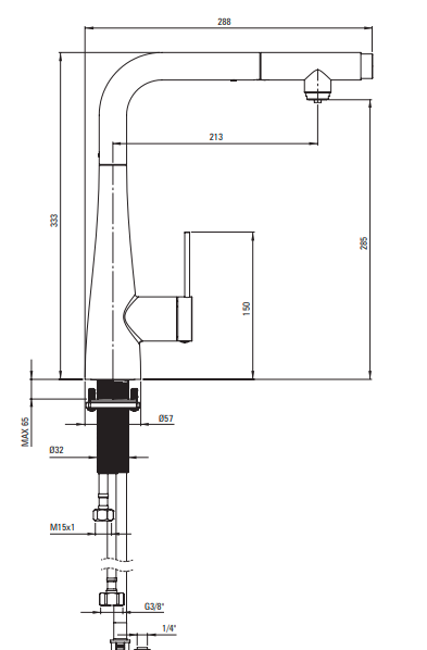 - wylewka wyciągana ze stali nierdzewnej z aeratorem