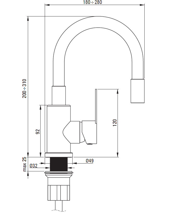 Bateria kuchenna DEANTE LUPO z giętą wylewką, czarny BLU N24M