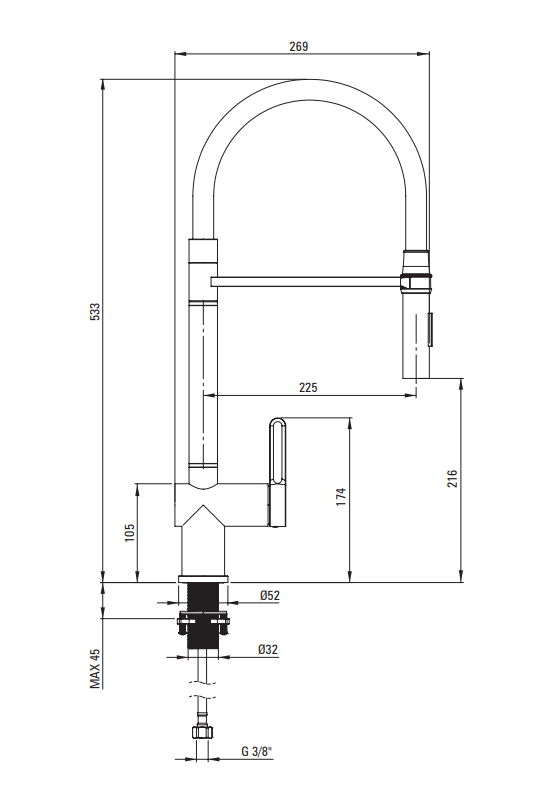 - gwint od instalacji: 3/8''