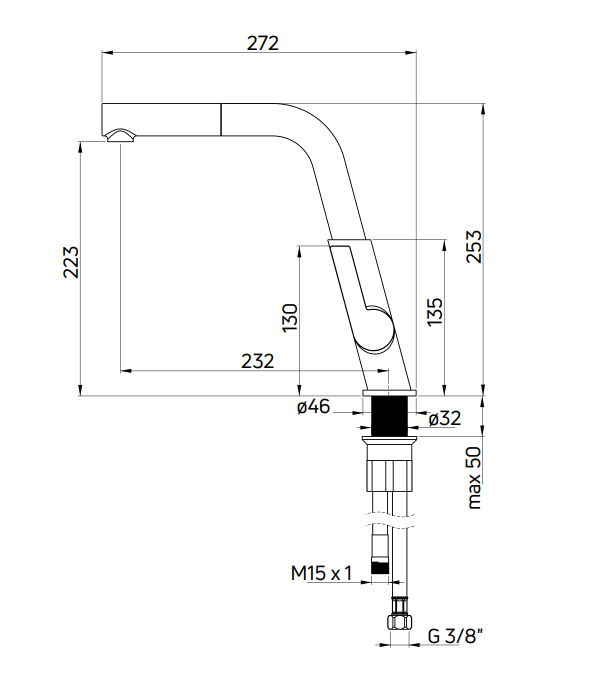 Bateria kuchenna DEANTE SILIA z wyciąganą wylewką, nero BQS N73M