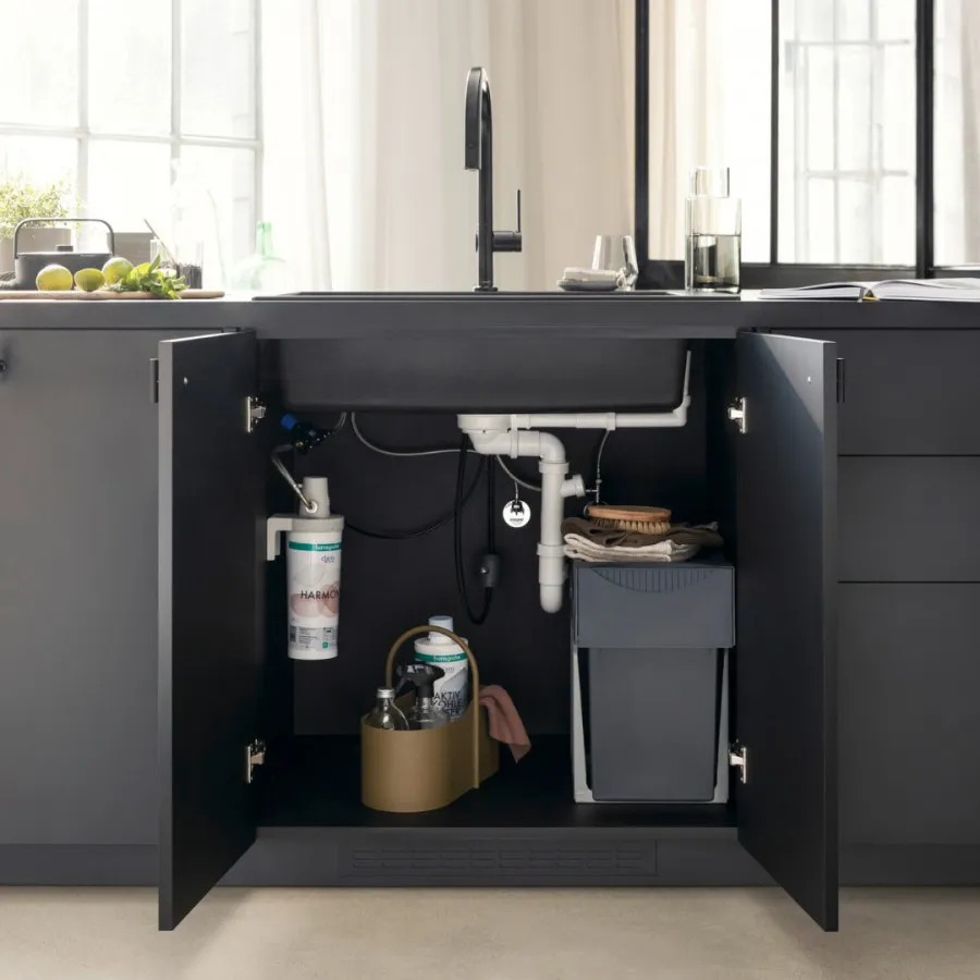 - sBox zapewnia ciche, płynne i bezpieczne prowadzenie węża w szafce pod blatem