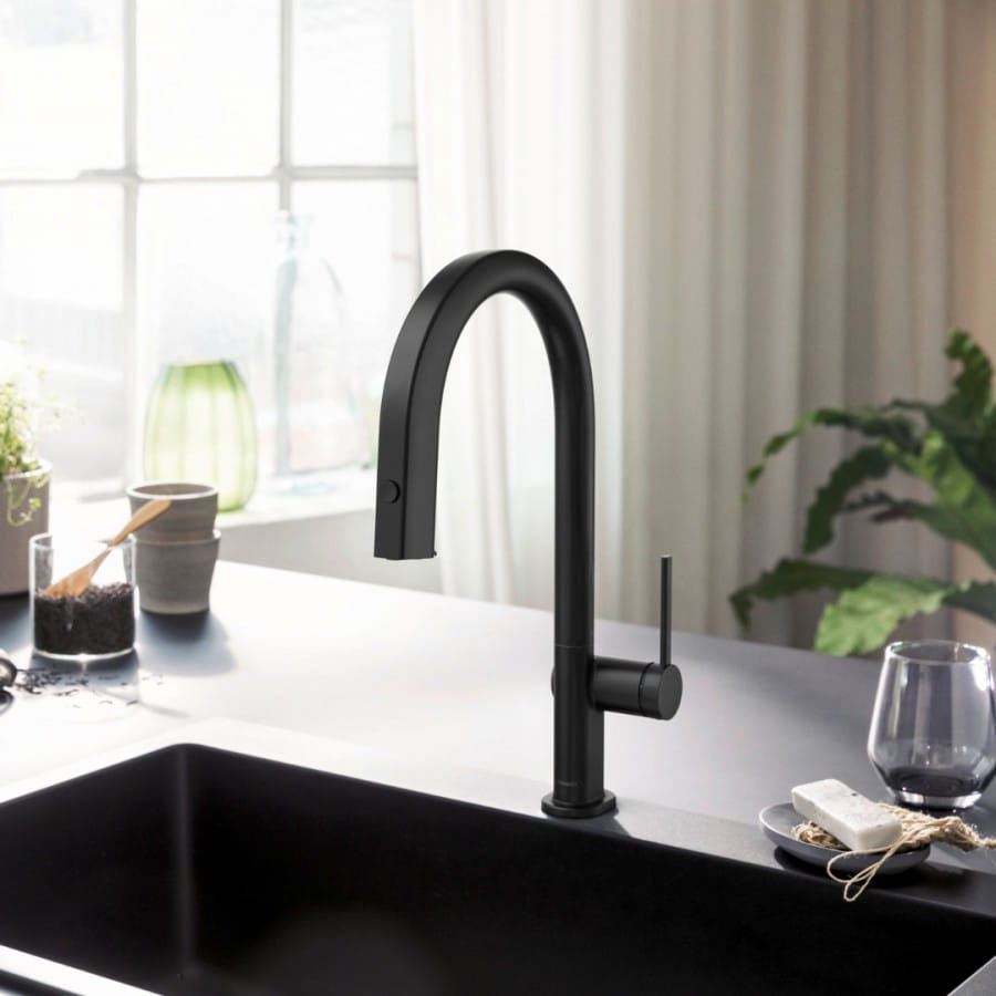 Bateria kuchenna HANSGROHE AQITTURA M91 FilterSystem 210 z wyciąganą wylewką, czarny mat 76803670