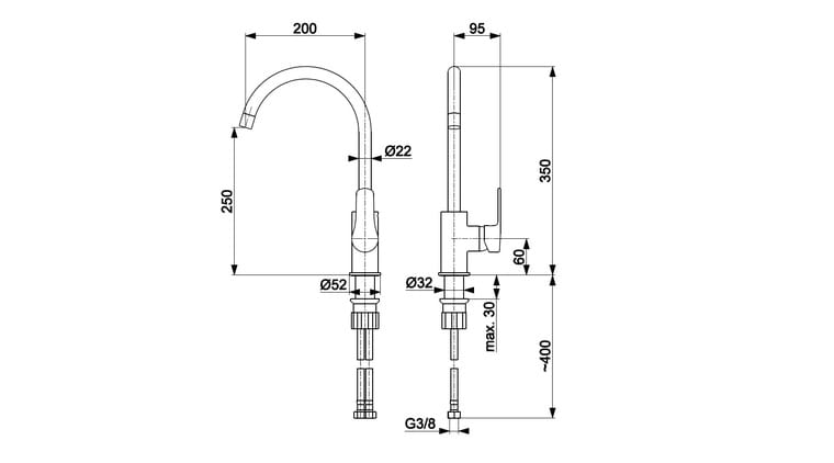 - Opakowanie zawiera: przyłącza elastyczne M10x1/G3/8" (2 szt.), komplet mocujący