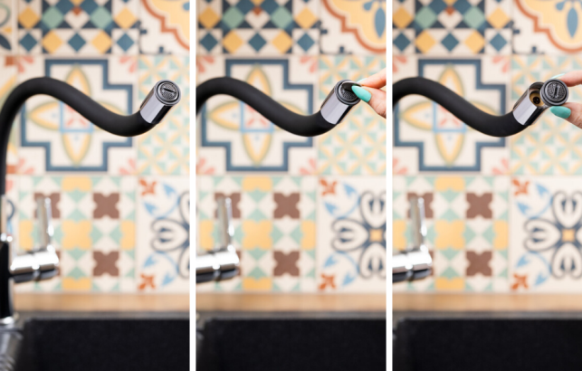 | Bateria Rumba dzięki elastycznej wylewce zapewnia swobodę i komfort użytkowania – strumień wody można kierować w dowolnym kierunku. Rozwiązanie to ułatwia mycie naczyń czy całego zlewozmywaka, a także zapewnia możliwość napełniania nawet bardzo dużych garnków.