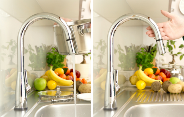 | Tauri Touch Me, marki KFA to rozwiązanie dla osób ceniących funkcjonalne i wygodne rozwiązania. Funkcja dotykowego uruchamiania i wyłączania gwarantuje bezpieczeństwo: odpowiednio ustawiona temperatura wody ochroni dzieci przed oparzeniem. Pomaga też dbać o porządek. Próbowaliście kiedyś odkręcić wodę bez użycia dłoni, bo mieliście brudne ręce? Zapomnijcie o tym, a także o odciskach brudnych palców czy małych rączek kuchennych pomocników.Minimalistyczne wzornictwo baterii Tauri pasuje do każdej kuchni. Smukła, wysoka wylewka pozwala na swobodne napełnianie nawet dużych garnków, dodatkowo możemy stabilnie trzymać go dwoma rękami – wodę zatrzymamy dotykając baterię garnkiem. Już nie rozlejecie już wody na blat, szafki i podłogę próbując jednym palcem lewej ręki zakręcić wodę.