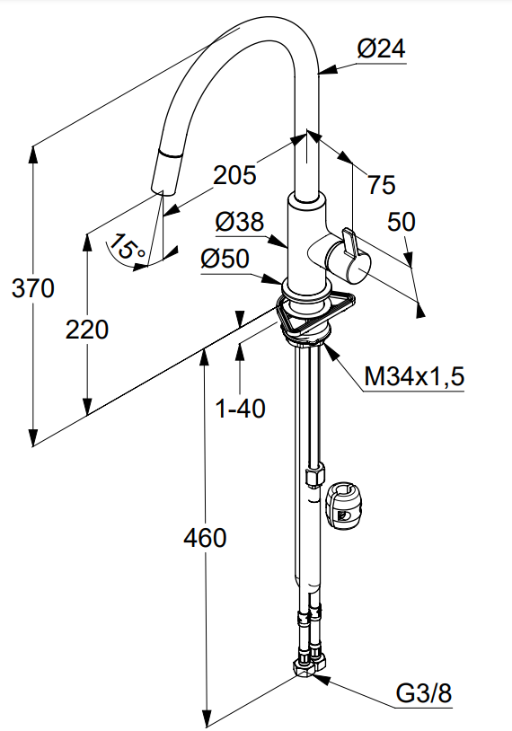 Jednouchwytowa bateria kuchenna DN 15