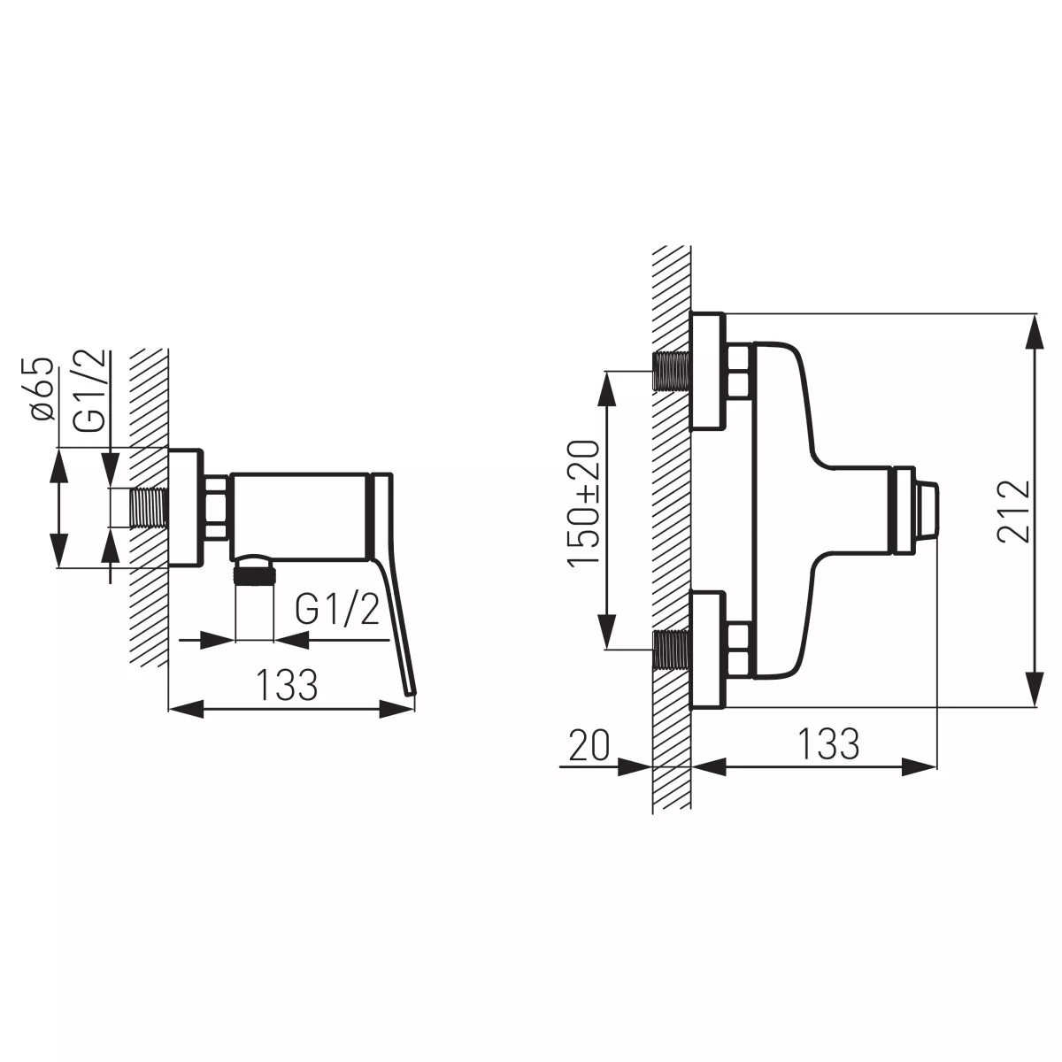 - przyłącze mimośrodowe G1/2 rozstaw 150 ± 20 mm