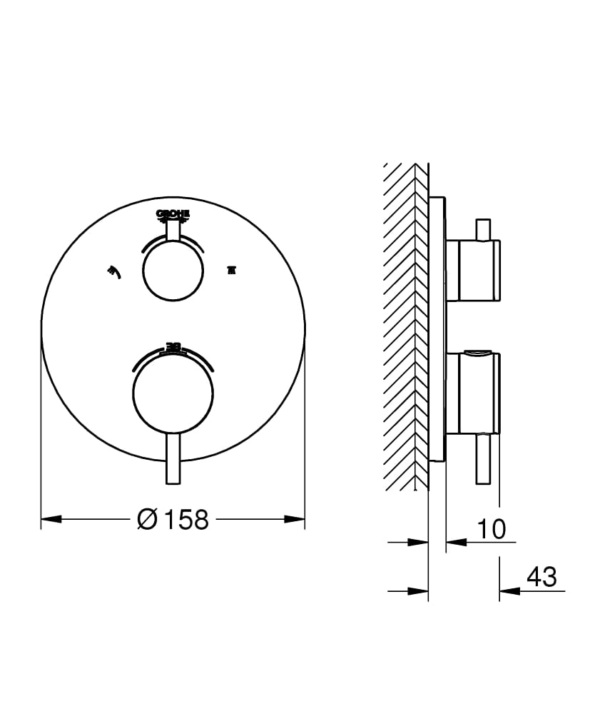 - GROHE SafeStop Plus w zestawie opcjonalny ogranicznik temperatury 43°C / 46°C