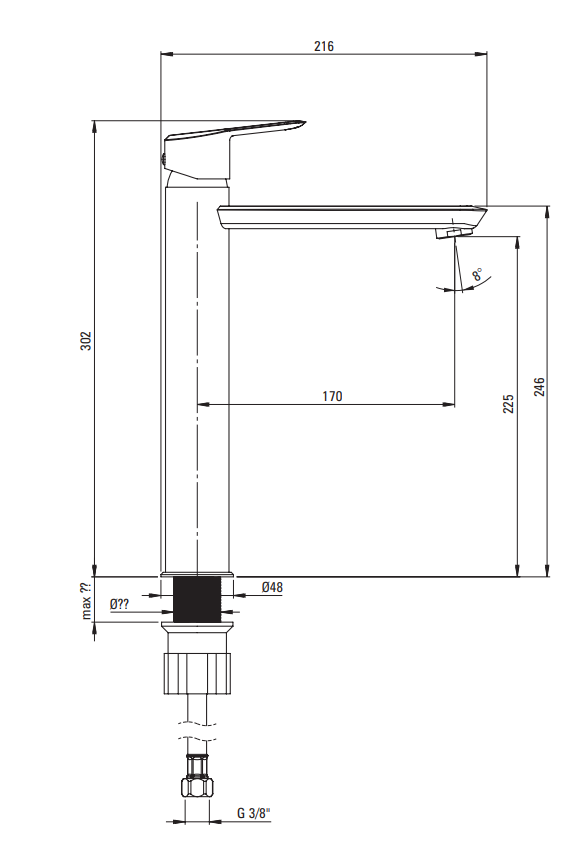 - Zasięg wylewki bateryjnej [mm] 170