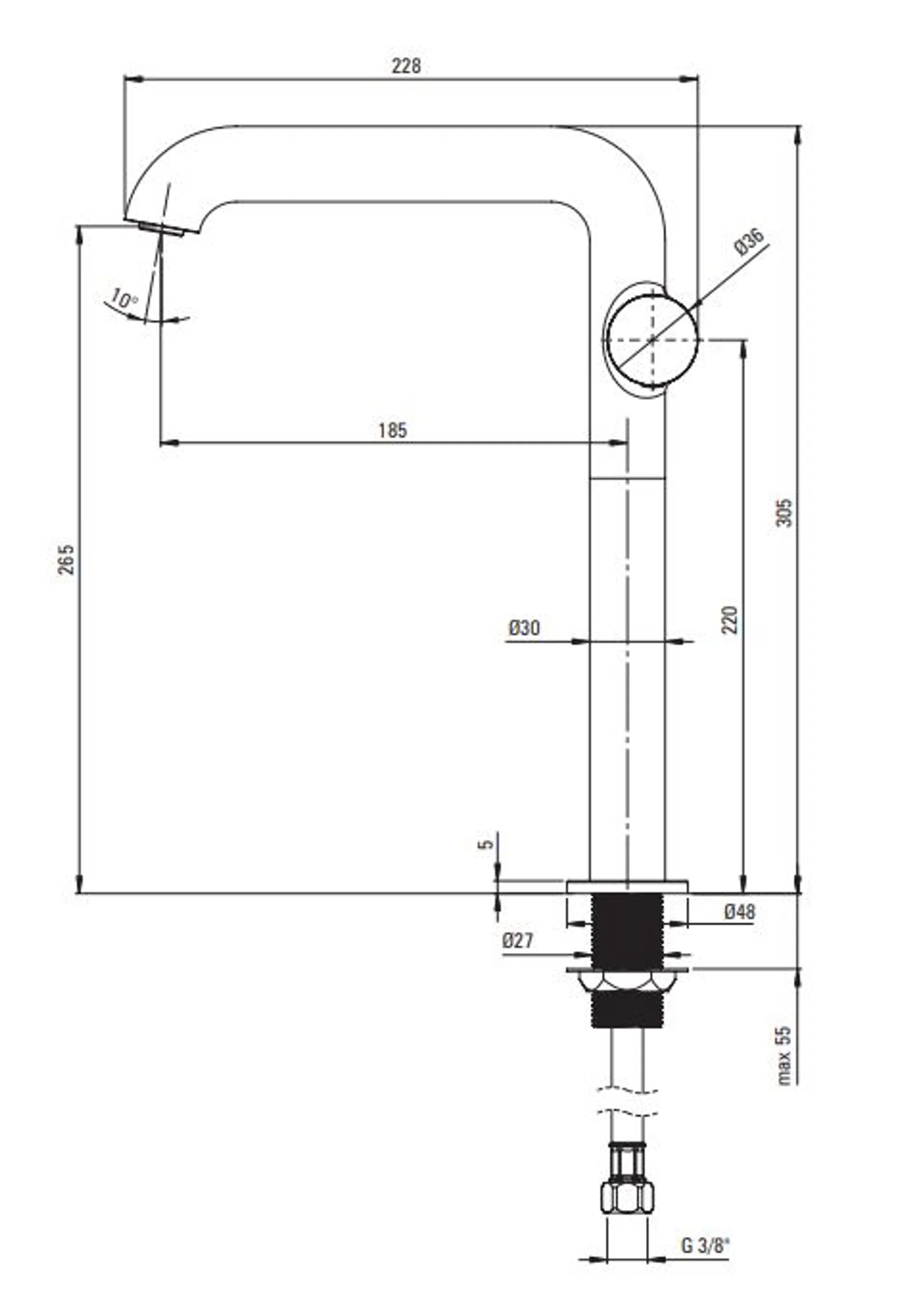 Silia Hexa Bateria umywalkowa wysoka z prostokątną wylewką
