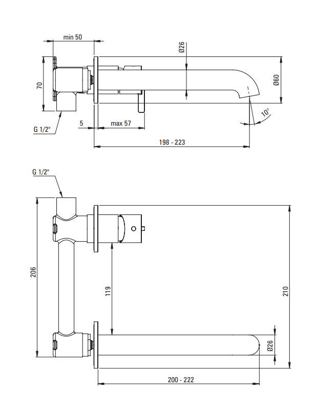 - Zasięg wylewki bateryjnej [mm] 223