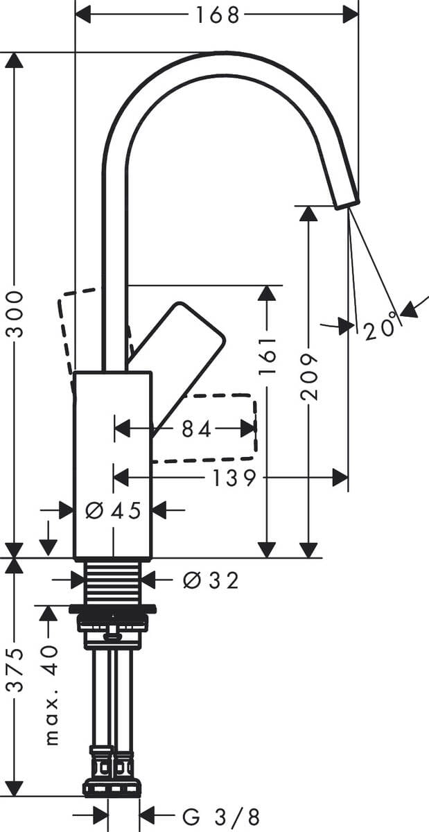 Vivenis Jednouchwytowa bateria umywalkowa 210 z obrotową wylewką bez kompletu odpływowego