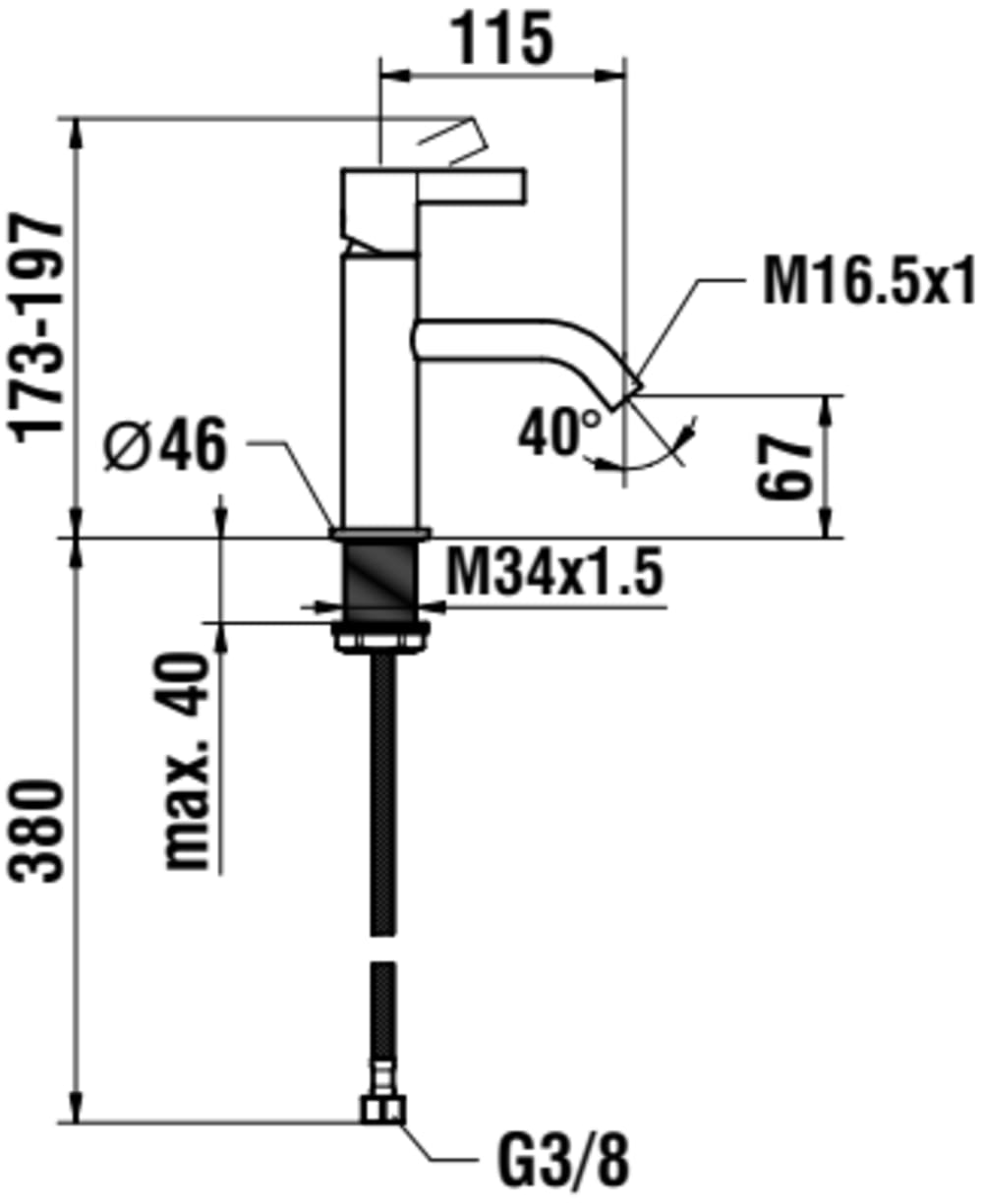 Bateria umywalkowa jednouchwytowa, wylewka stała, długość wylewki 115 mm, bez korka automatycznego
