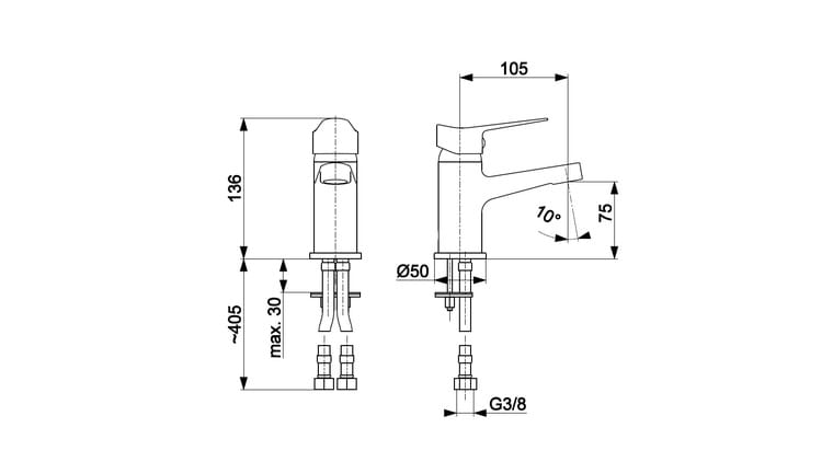 - Opakowanie zawiera: spust sterowany 5/4" z przelewem, komplet mocujący z uszczelkami, przyłącza elastyczne M10x1/G3/8" (L=350 mm, 2 szt.)