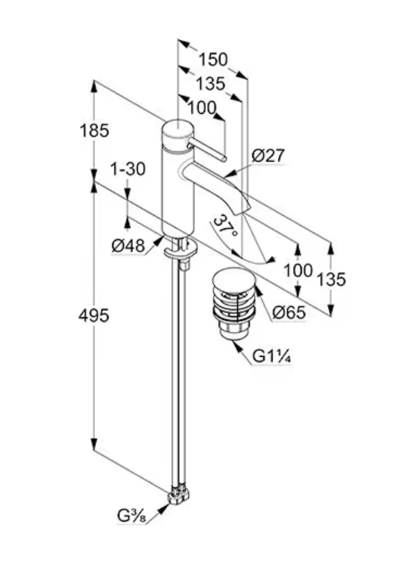 - wysokość wylewki 100 mm