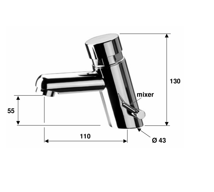 - Bateria czasowa umywalkowa z bocznym mieszaczem wody.