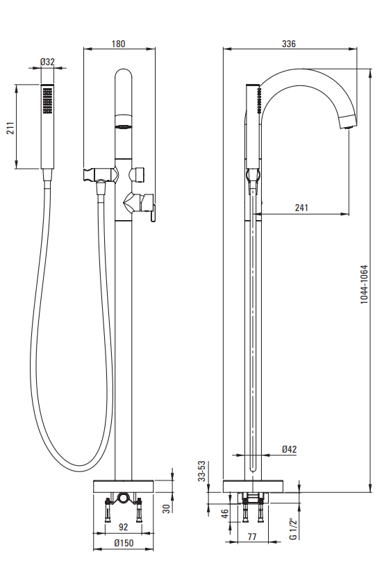 SILIA Bateria wannowa wolnostojąca z zestawem prysznicowym