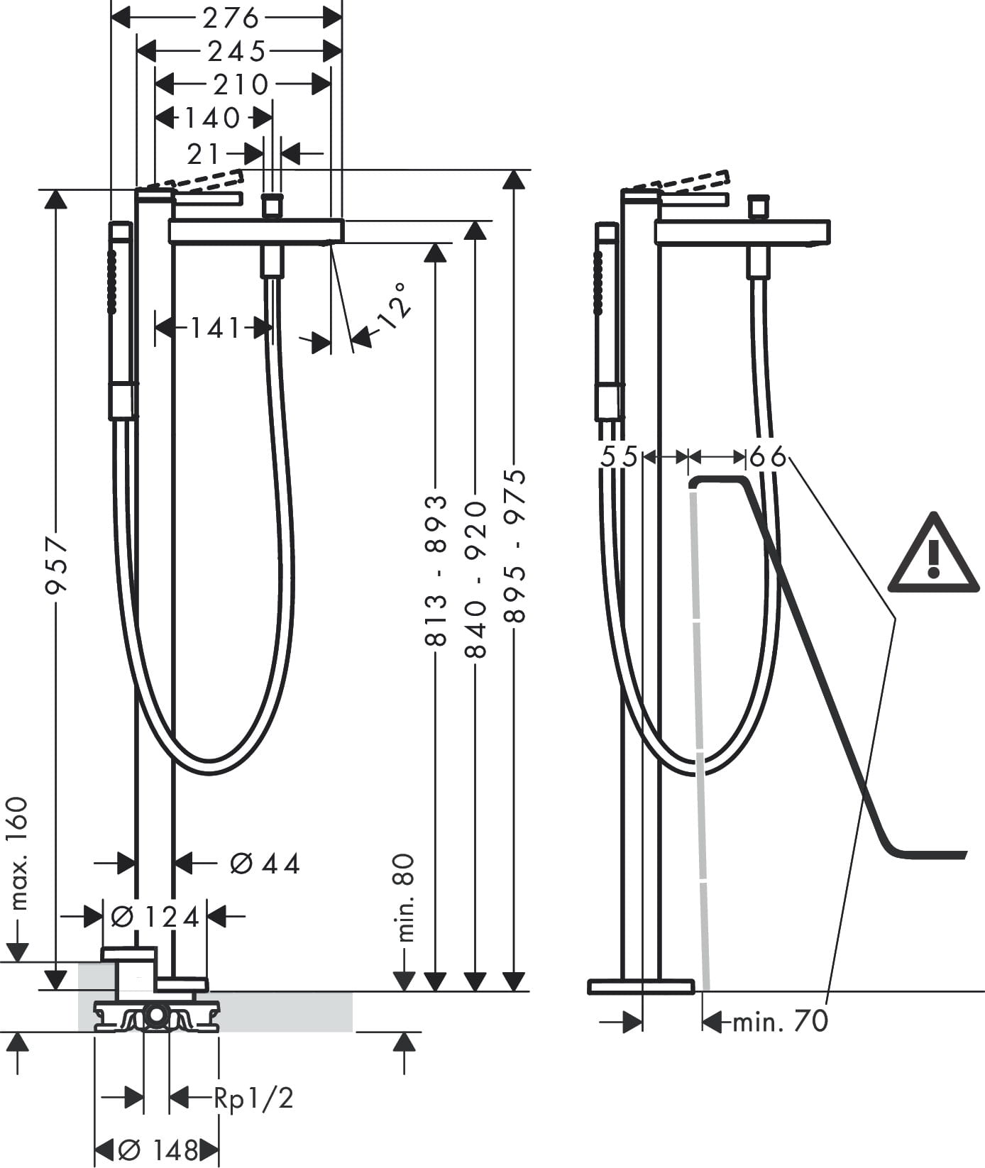 - w składzie: jednouchwytowa bateria wannowa podłogowa, główka prysznicowa, wąż prysznicowy, uchwyt prysznicowy