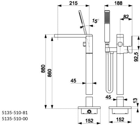 Bateria wannowa KFA LOGON wolnostojąca, chrom/czarny 5135-510-81