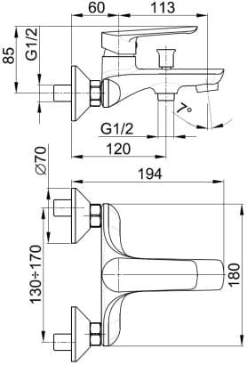 | Kategoria | Baterie wannowo - prysznicowe |