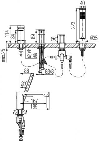 LOFT Bateria wannowa 4-otworowa stojąca z akcesoriami