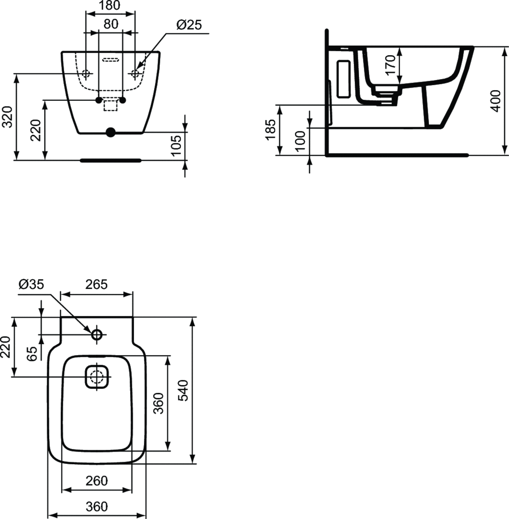Bidet wiszący IDEAL STANDARD STRADA II 54x36cm, biały T297101