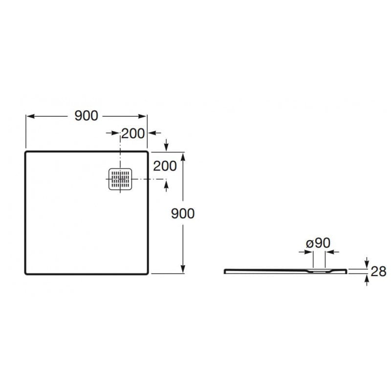 Brodzik kwadratowy ROCA TERRAN 90x90cm, z syfonem, biały AP10338438401100