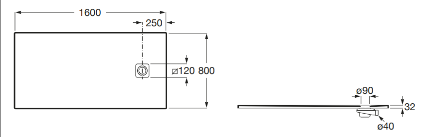 Brodzik prostokątny ROCA MAGMA 160x80cm onyks APE0164032003640
