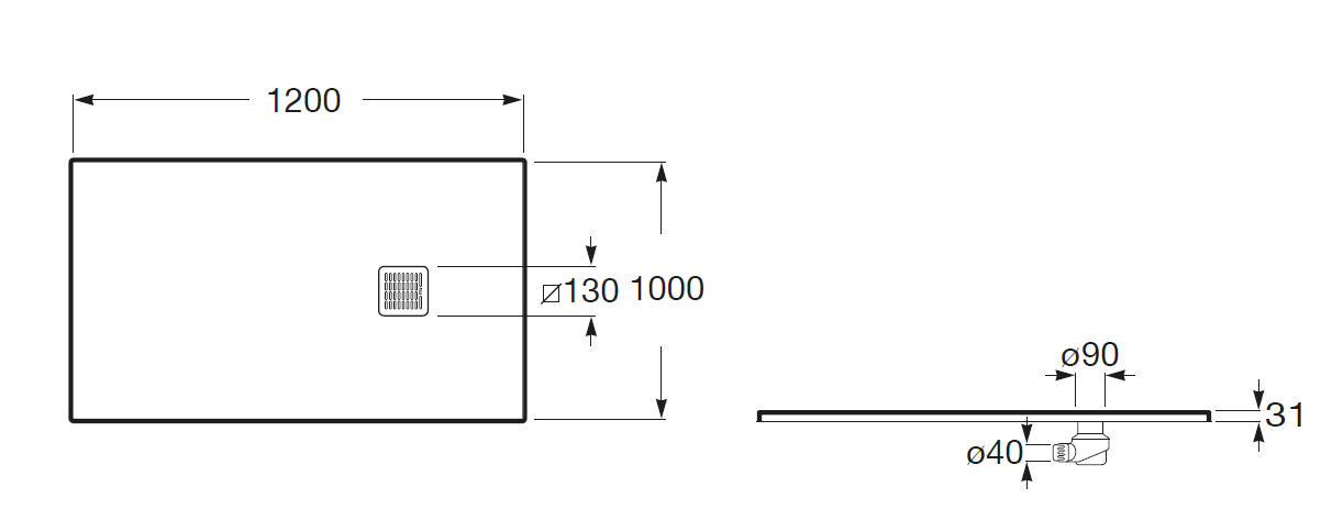 - Średnica odpływu (mm): 90
