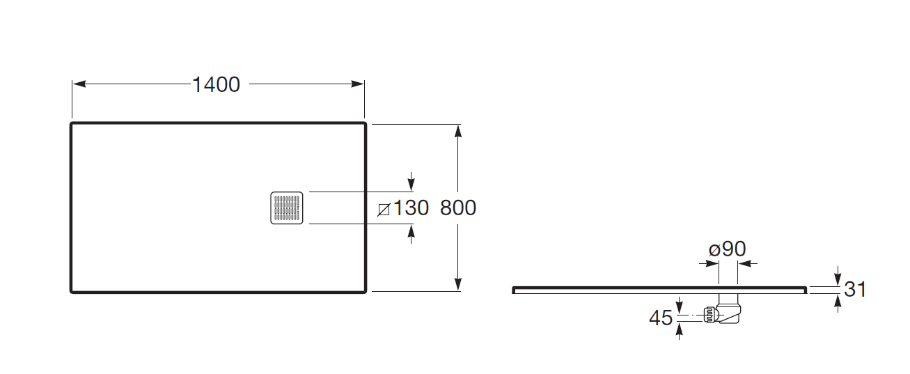 Brodzik prostokątny ROCA TERRAN 140x80 cafe AP10157832001660