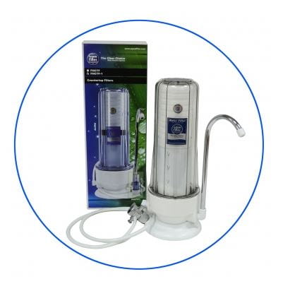 2 stopniowy filtr wolnostojący, wyprodukowany z komponentów certyfikowanych przez NSF oraz WRAS. Filtr zawiera wkład FCCA-STO, który usuwa z wody zanieczyszczenia stałe: piasek, muł, zawiesiny, a także chlor, niektóre pestycydy oraz substancje organiczne. FHCTF montowany jest na blacie kuchennym i bezpośrednio podłączony do baterii kuchennej.