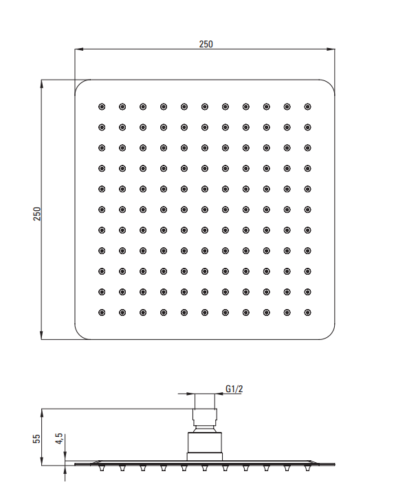 Głowica prysznicowa stalowa - 250x250 mm