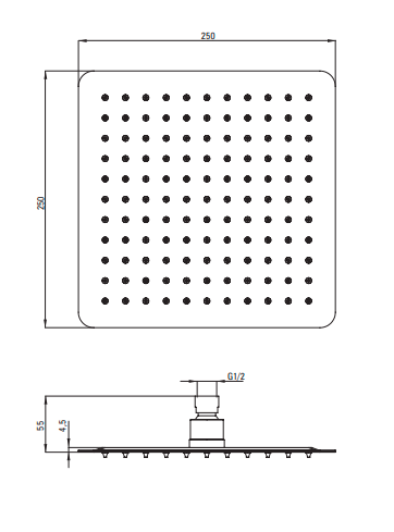 Głowica prysznicowa to wygodne rozwiązanie dla każdej łazienki. Deszczownica daje stały, napowietrzony strumień wody, zmniejszając jej zużycie. Zapobiega chlapaniu na boki, co znacznie ułatwia sprzątanie kabiny prysznicowej. Jest dużo bardziej dyskretna niż tradycyjna słuchawka, co jest ważne zwłaszcza w małych łazienkach. Łatwa w montażu, ma standardowe przyłącze. Produkt wykonany jest z najwyższej jakości stali, testowanej w laboratorium. Głowica ma kształt kwadratu o wymiarach 250x250 mm.