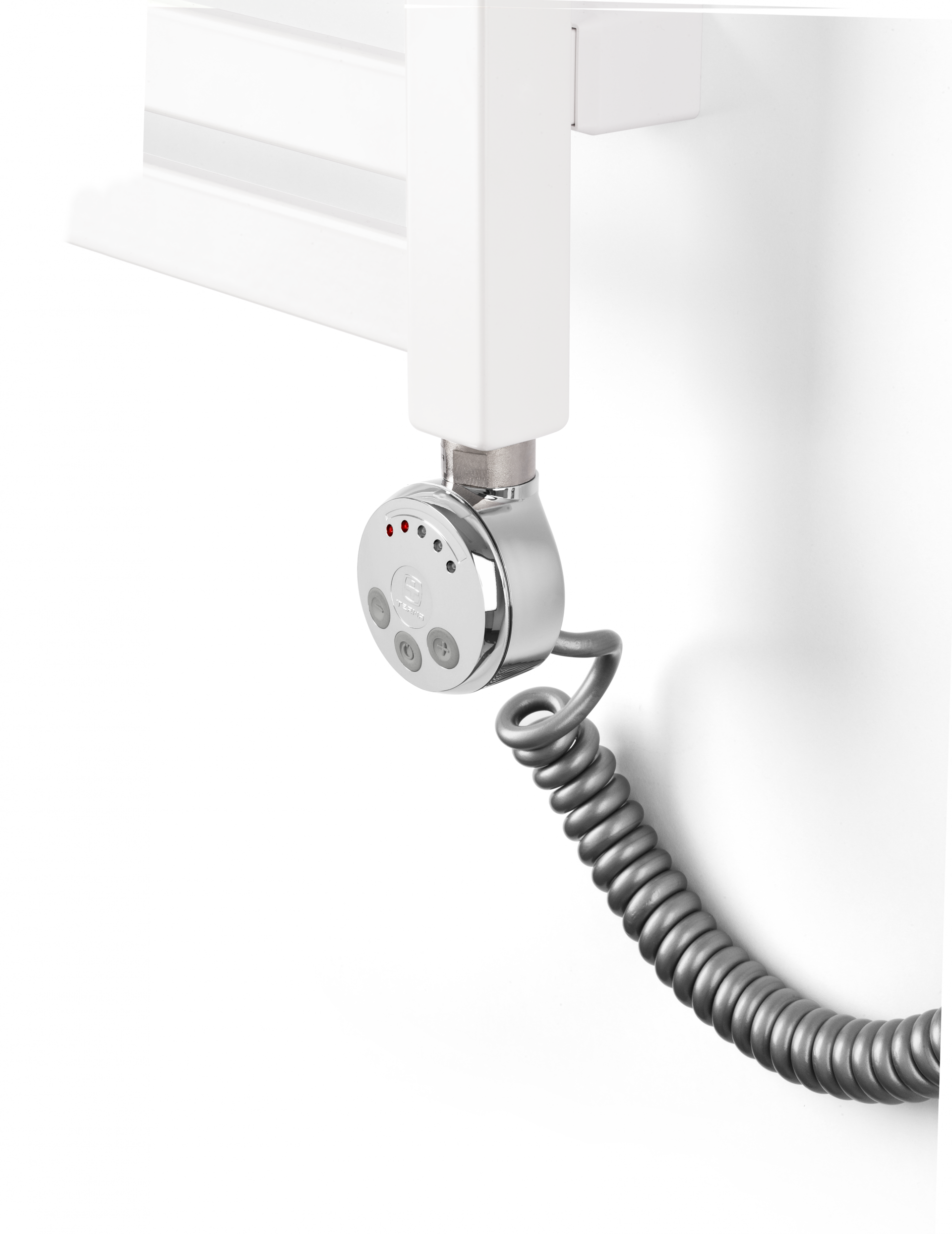 Grzałka oferuje pięć ustawień temperatury grzejnika w zakresie od 30°C do 60°C. Elektroniczny czujnik w grzałce pozwala na ich precyzyjne utrzymanie. Urządzenie prezentuje aktualny i nastawiony poziom temperatury. Dostępne kolory: biały, silver, chrom oraz czarny.