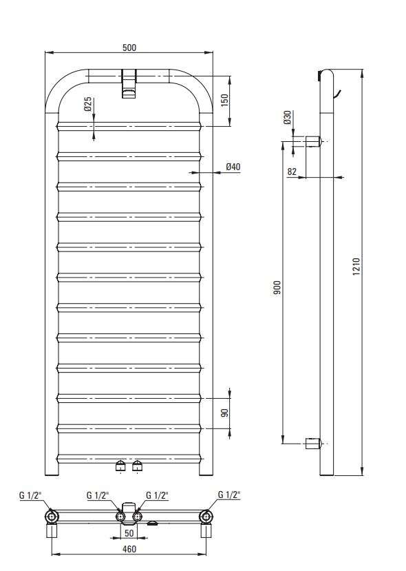Wieszak na ręcznik zwiększa funkcjonalność grzejnika, oferując wygodne miejsce na suszenie ręczników. To praktyczne rozwiązanie, które pozwala zaoszczędzić przestrzeń i eliminuje potrzebę montażu dodatkowych wieszaków.Dane techniczne