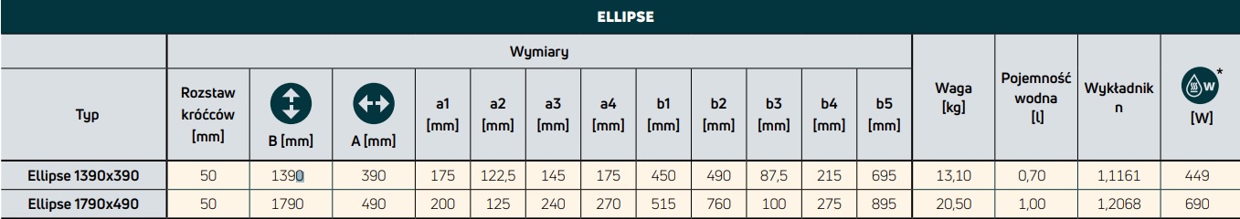 Ellipse to grzejnik stalowy zbudowany z płaskiej płyty wyciętej w kształt elipsy ze zgrzanym do niej płaszczem wodnym ukrytym od strony ściany. W górnej części grzejnika znajduje się otwór. Procedura obróbki jest zgodna z DIN 55900 i EN 442 (bezemisyjna) i składa się z: