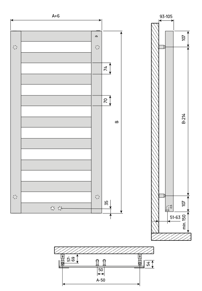 Płaski kształt i konstrukcja grzejnika łazienkowego Rasp nadają mu wyjątkowo elegancki wygląd. Szerokie prostokątne sekcje zapewniają wystarczająco dużo miejsca do suszenia ręczników.