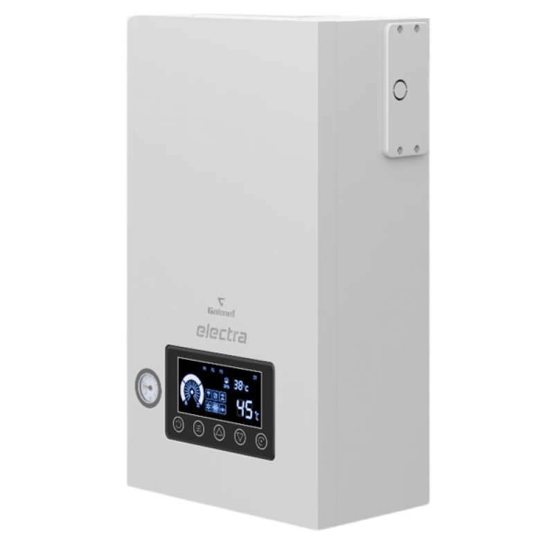 Galmet ELECTRA 11GT Kocioł elektryczny o mocy 11kW, ekologiczny, automatyczny z opatentowaną technologią podgrzewania wody. Małe kompaktowe wymiary ( ze względu na małe gabaryty i niewielką wagę może być powieszony bezpośrednio na ścianie.) Kocioł jest wyposażony w naczynie przeponowe o pojemności 5 litrów/ 1,5 bar. Istnieje możliwość podłączenia kotła do termostatu pokojowego (dowolnego termostau typu: ON/OFF). Moduł Wi-Fi. Trzy stopnie mocy grzewczej - 33%, 66%,100%.