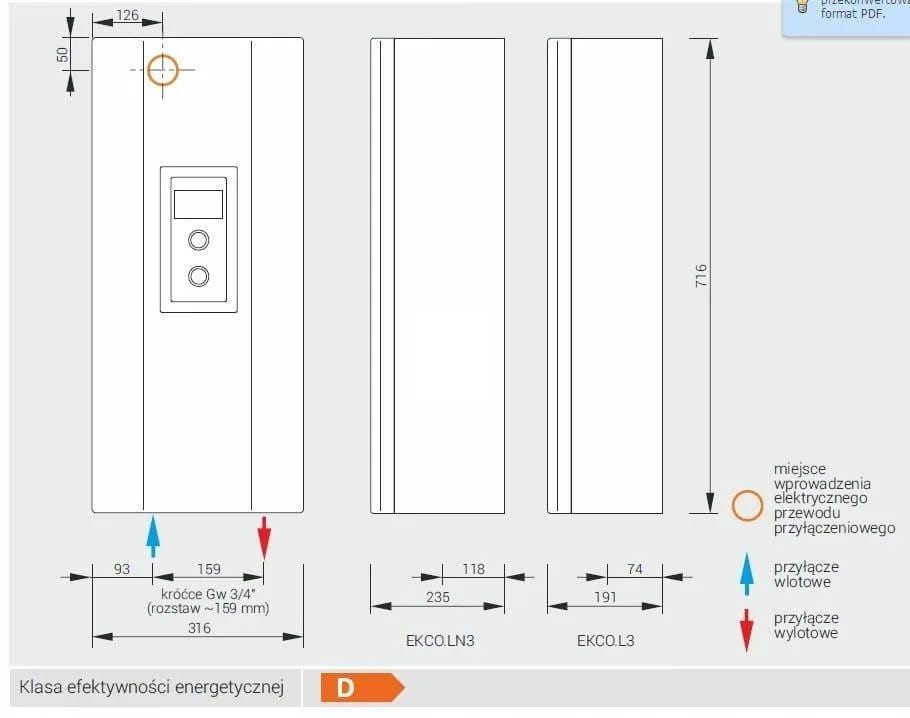 Kocioł elektryczny KOSPEL EKCO.LN3 12-24kW 400V naczynie przeponowe EKCO.LN3-12/16/20/24