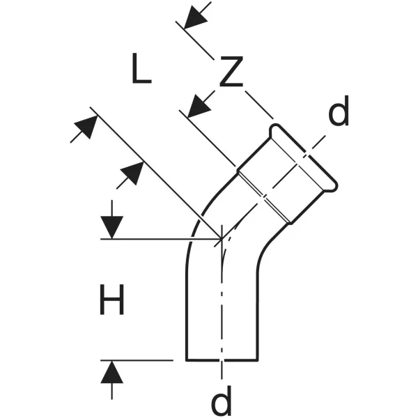 Kolano GEBERIT MAPRESS Edelstahl d22 45° 30704