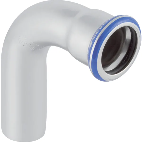 Kolano Geberit Mapress Edelstahl z końcówką wsuwaną element instalacyjny wykonany ze stali nierdzewnej, przeznaczony do profesjonalnych systemów rurowych. Dostępny w różnych średnicach, umożliwiający budowę niezawodnych instalacji.